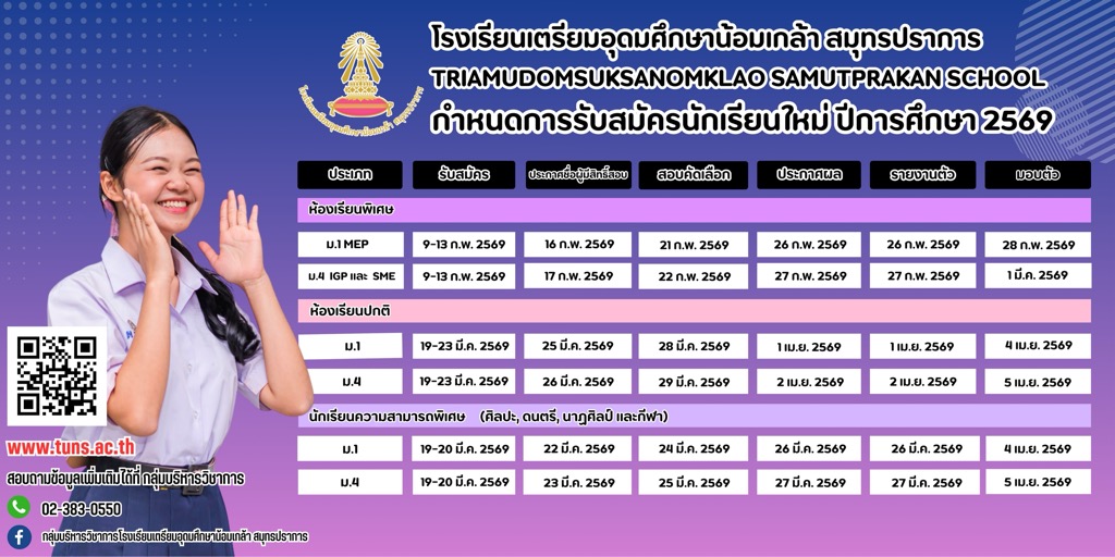 กำหนดการรับสมัครนักเรียนใหม่ปีการศึกษา 2569