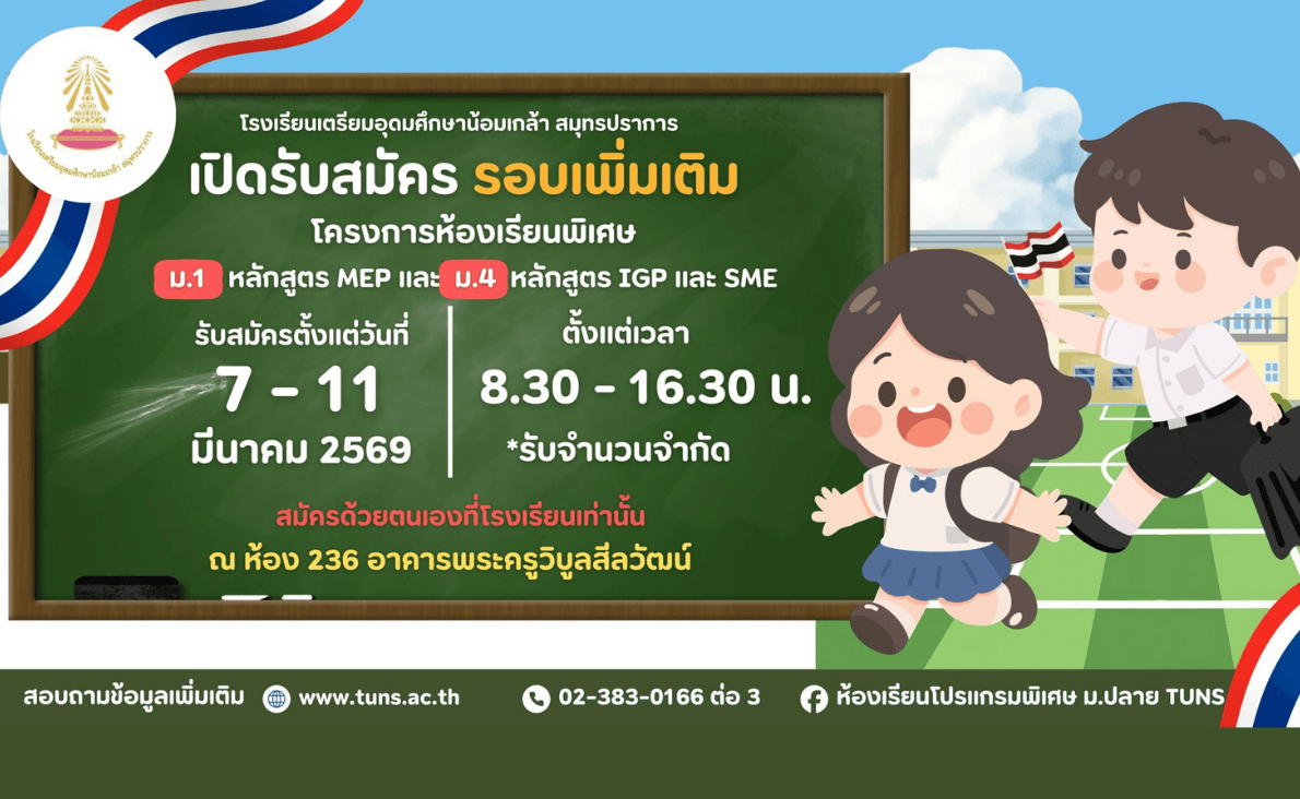 เปิดรับสมัคร ‼️‼️ (รอบเพิ่มเติม) นักเรียนห้องเรียนพิเศษ ม.1 (MEP) นักเรียนห้องเรียนพิเศษ ม.4 (IGP) และ (SME) ปีการศึกษา 2569 06 มี.ค. 69