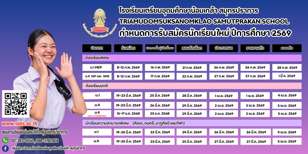 กำหนดการรับสมัครนักเรียนใหม่ปีการศึกษา 2569