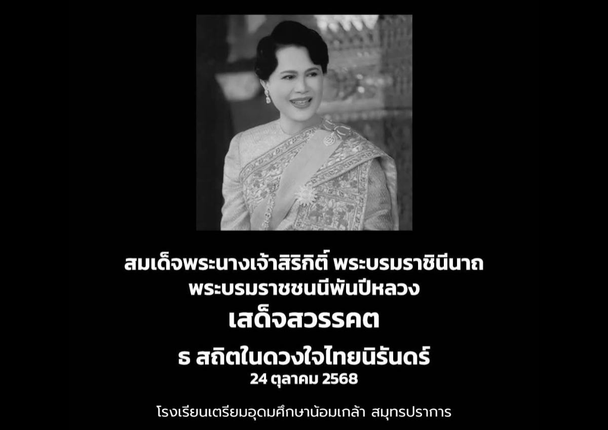 ประกาศ การงดการจัดพิธีต้อนรับผู้อำนวยการโรงเรียน เพื่อร่วมถวายความอาลัยแด่สมเด็จพระนางเจ้าสิริกิติ์ พระบรมราชินีนาถ พระบรมราชชนนีพันปีหลวง และขอให้บุคลากรทุกท่านร่วมแสดงความอาลัยโดยการแต่งกายไว้ทุกข์และปฏิบัติตนอย่างสำรวม 25 ต.ค. 68